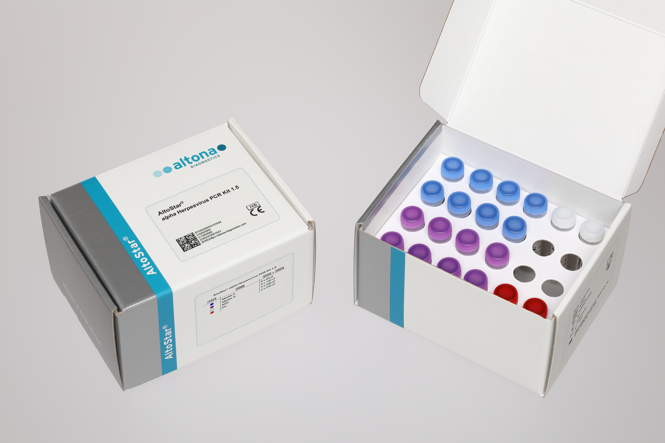 The AltoStar® alpha Herpesvirus PCR Kit 1.5 is an in vitro diagnostic test, based on real-time PCR technology, for the qualitative detection and differentiation of herpes simplex virus 1 (HSV-1), herpes simplex virus 2 (HSV-2) and varicella-zoster virus (VZV) specific DNA in human cutaneous and mucocutaneous swab specimens. It is intended to be used as an aid for diagnosis of HSV-1, HSV-2 and VZV infection.