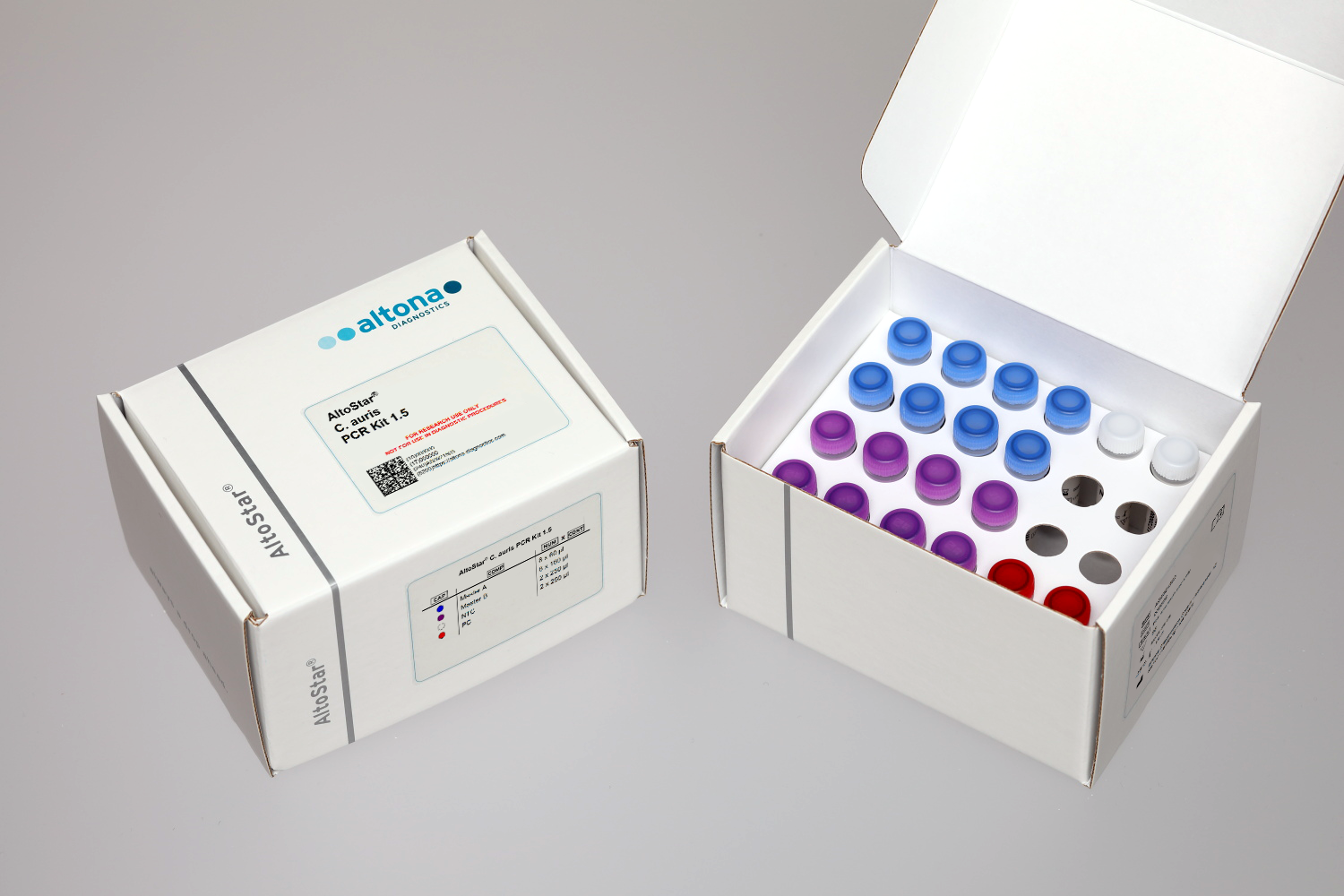 The AltoStar® C. auris PCR Kit 1.5 is a reagent system, based on real-time PCR technology, for the qualitative detection of Candida auris specific DNA.