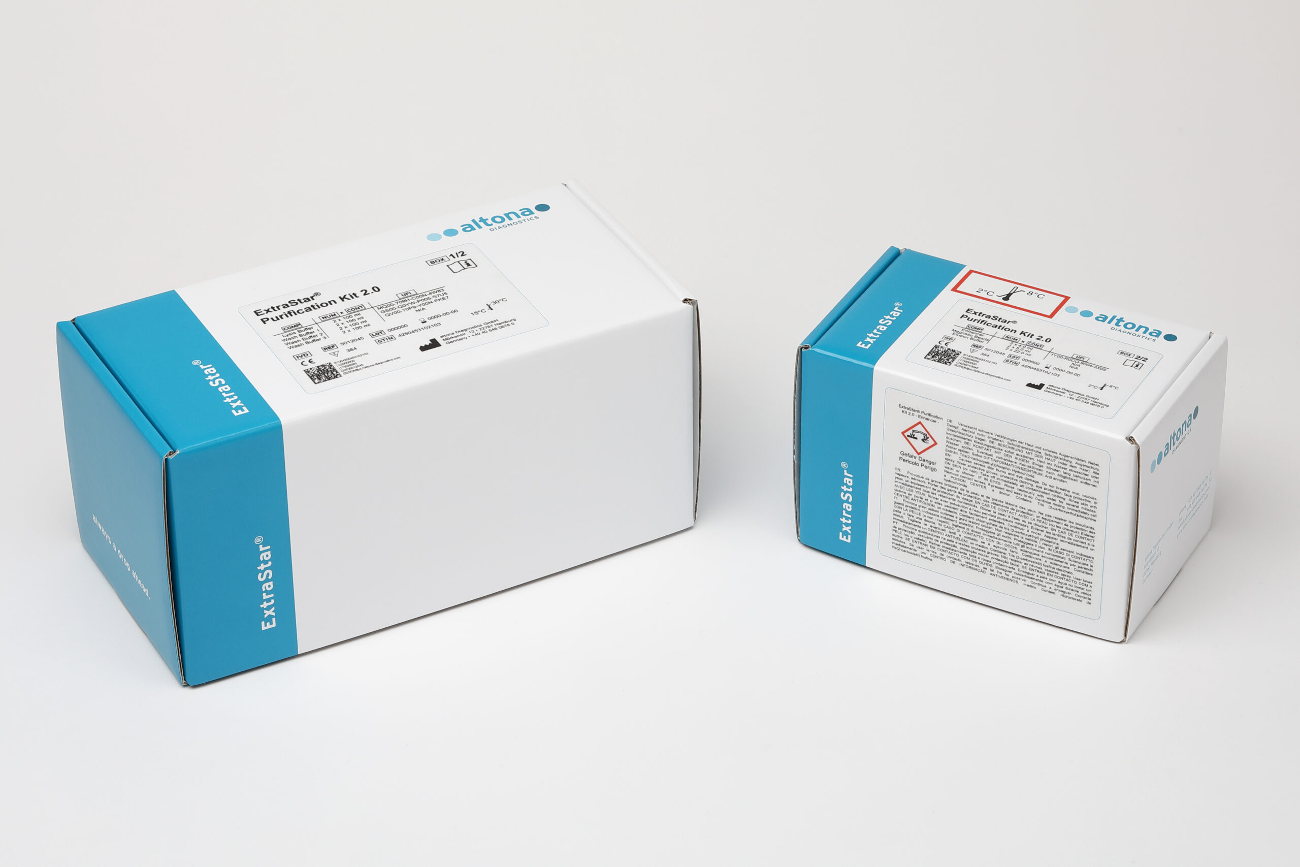 All reagents included in the ExtraStar® Purification Kit 2.0 are ready-to-use solutions and are shipped in two separate boxes: Box 1 and Box 2. The boxes are shipped at room temperature.