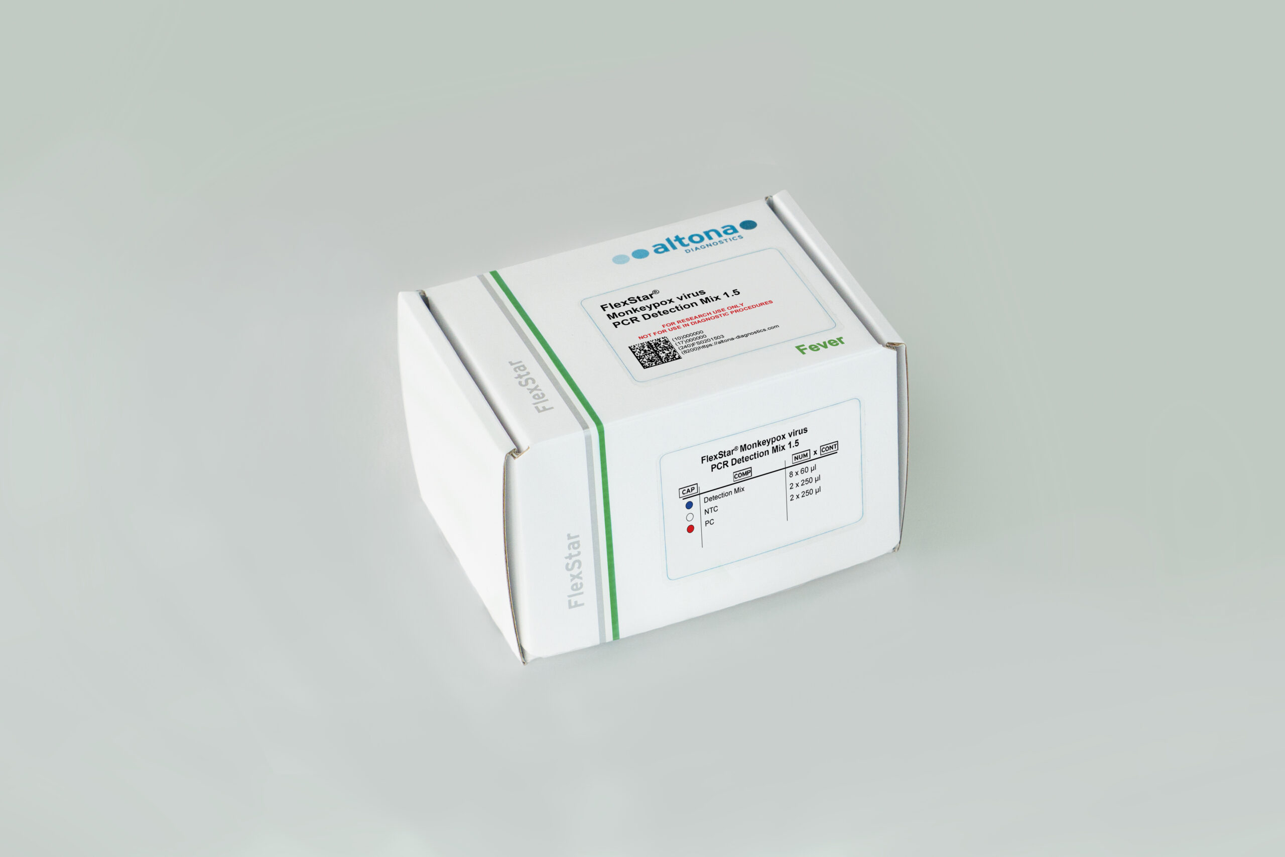The FlexStar® Monkeypox virus PCR Detection Mix 1.5 is a reagent system, based on real-time PCR technology, for the qualitative detection of monkeypox (mpox) virus specific DNA. To be used with the FlexStar® (RT-)PCR Amplification Mix 1.5 RUO, the Universal Internal Control Template 1.0 (RUO) and the AltoStar® Internal Control 1.5.