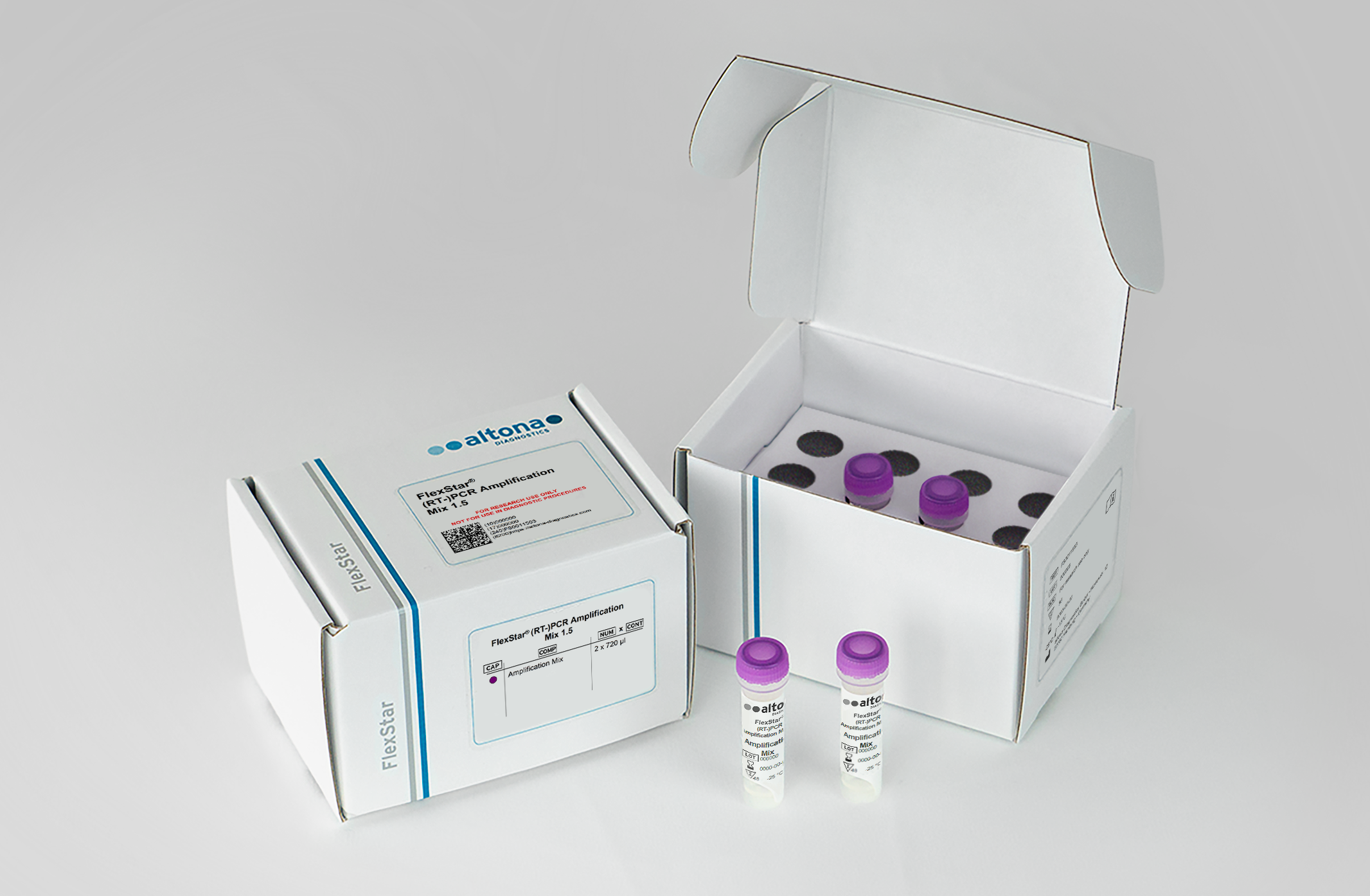 The FlexStar® Amplification Mix 1.5 is an enzyme mix, which in combination with FlexStar® Detection Mixes allows the real-time PCR based amplification and detection of pathogen specific nucleic acids. To be used with the FlexStar® Detection Mixes and the AltoStar® Internal Control 1.5.