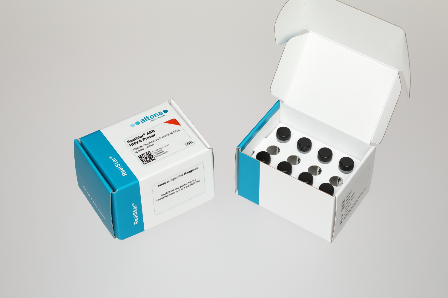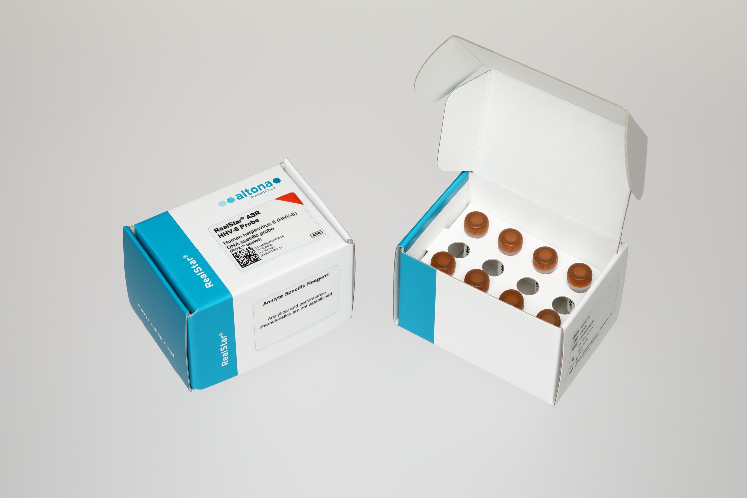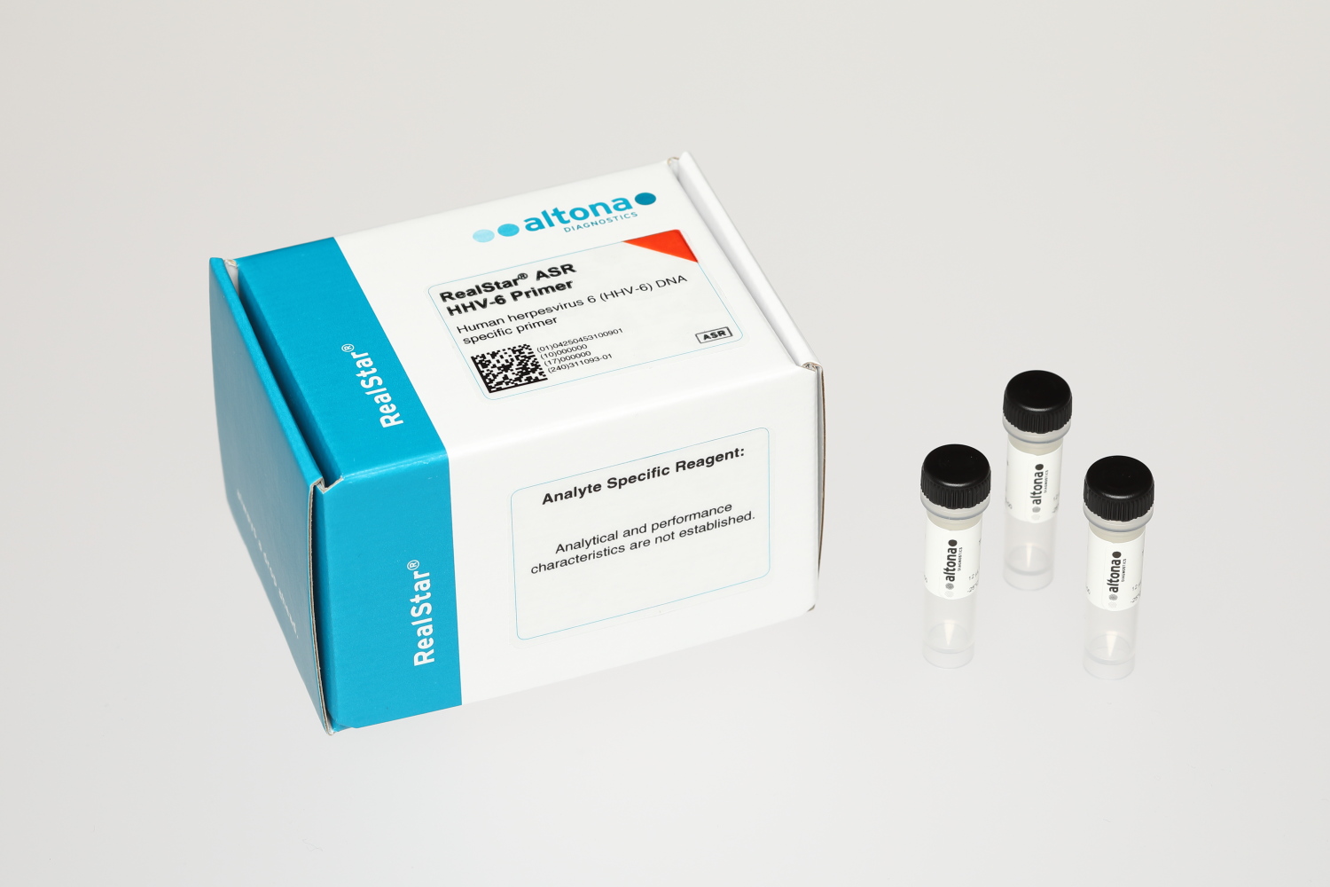 The RealStar® ASR HHV-6 Probe and the RealStar® ASR HHV-6 Primer are analyte specific reagents (ASR) for the in vitro detection of human herpesvirus 6A and 6B specific DNA by real-time polymerase chain reaction (PCR).