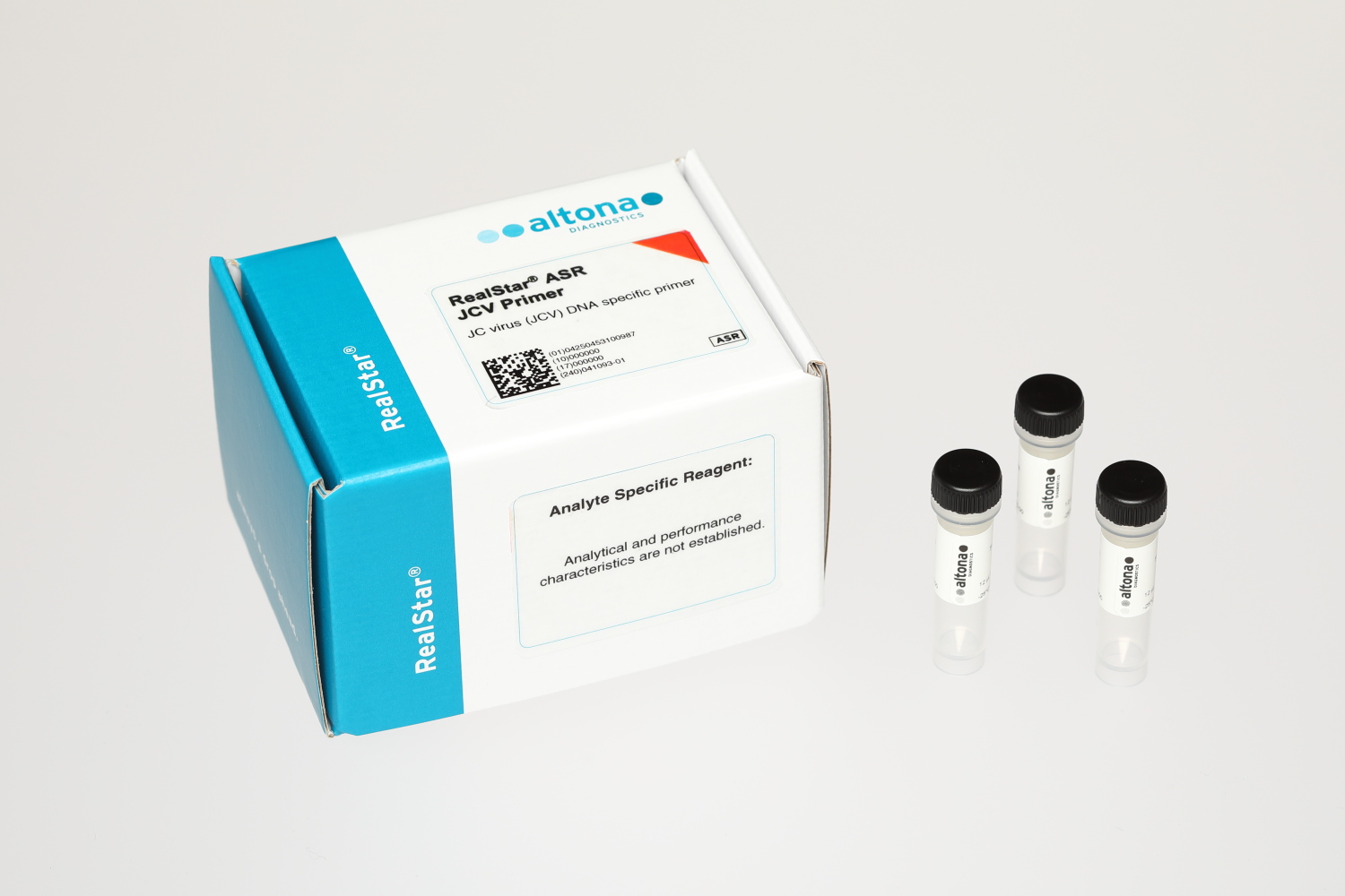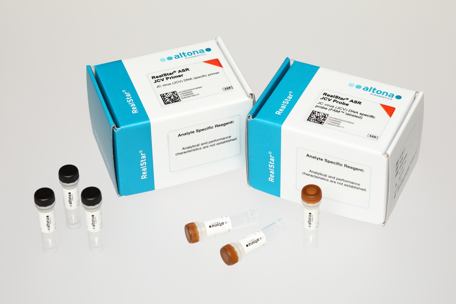 The RealStar® ASR JCV Probe and the RealStar® ASR JCV Primer are analyte specific reagents (ASR) for the in vitro detection of JC virus (JCV) specific DNA by real-time polymerase chain reaction (PCR).