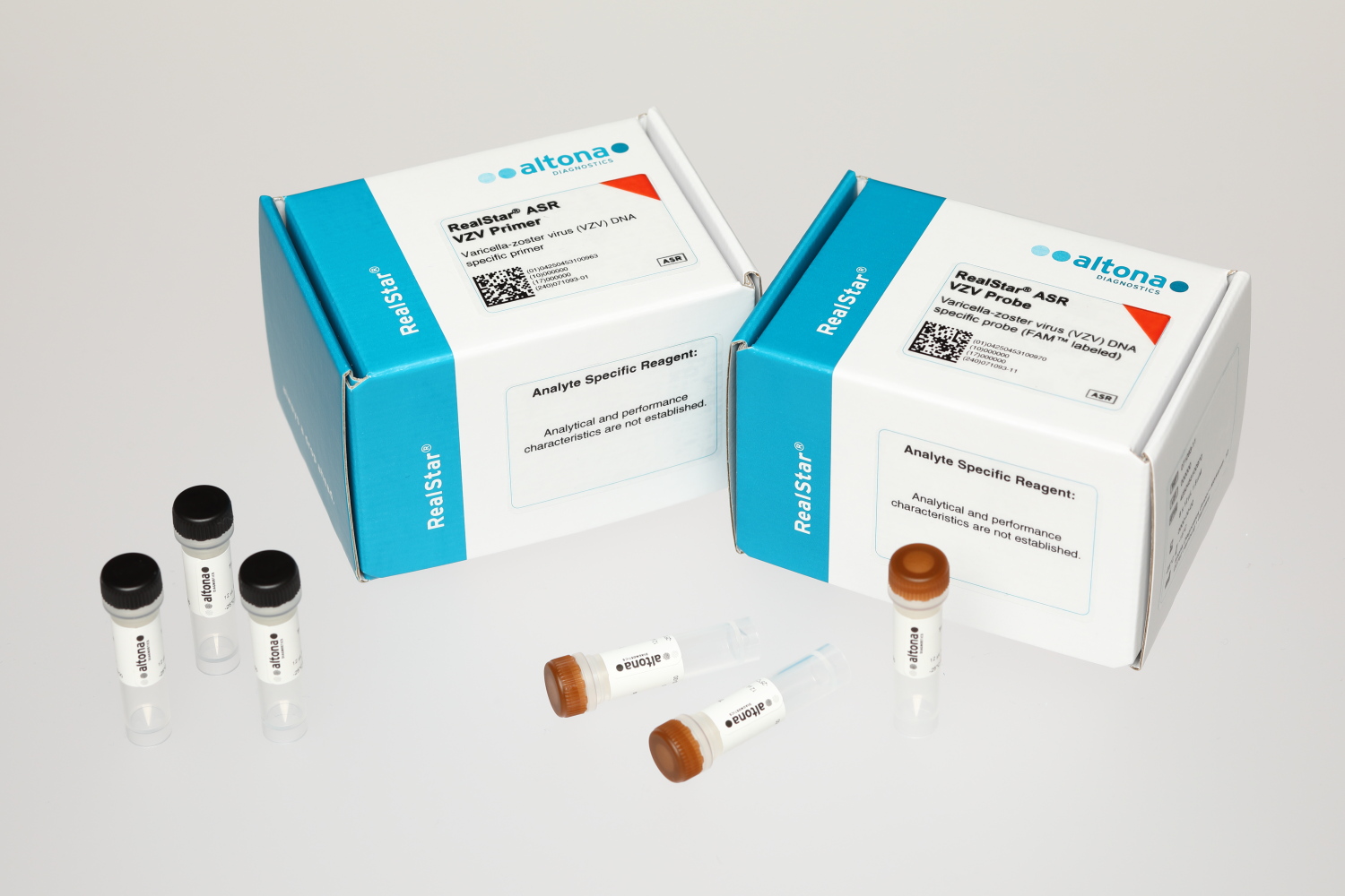 The RealStar® ASR VZV Probe and the RealStar® ASR VZV Primer are analyte specific reagents (ASR) for the in vitro detection of varicella-zoster virus (VZV) specific DNA by real-time polymerase chain reaction (PCR).