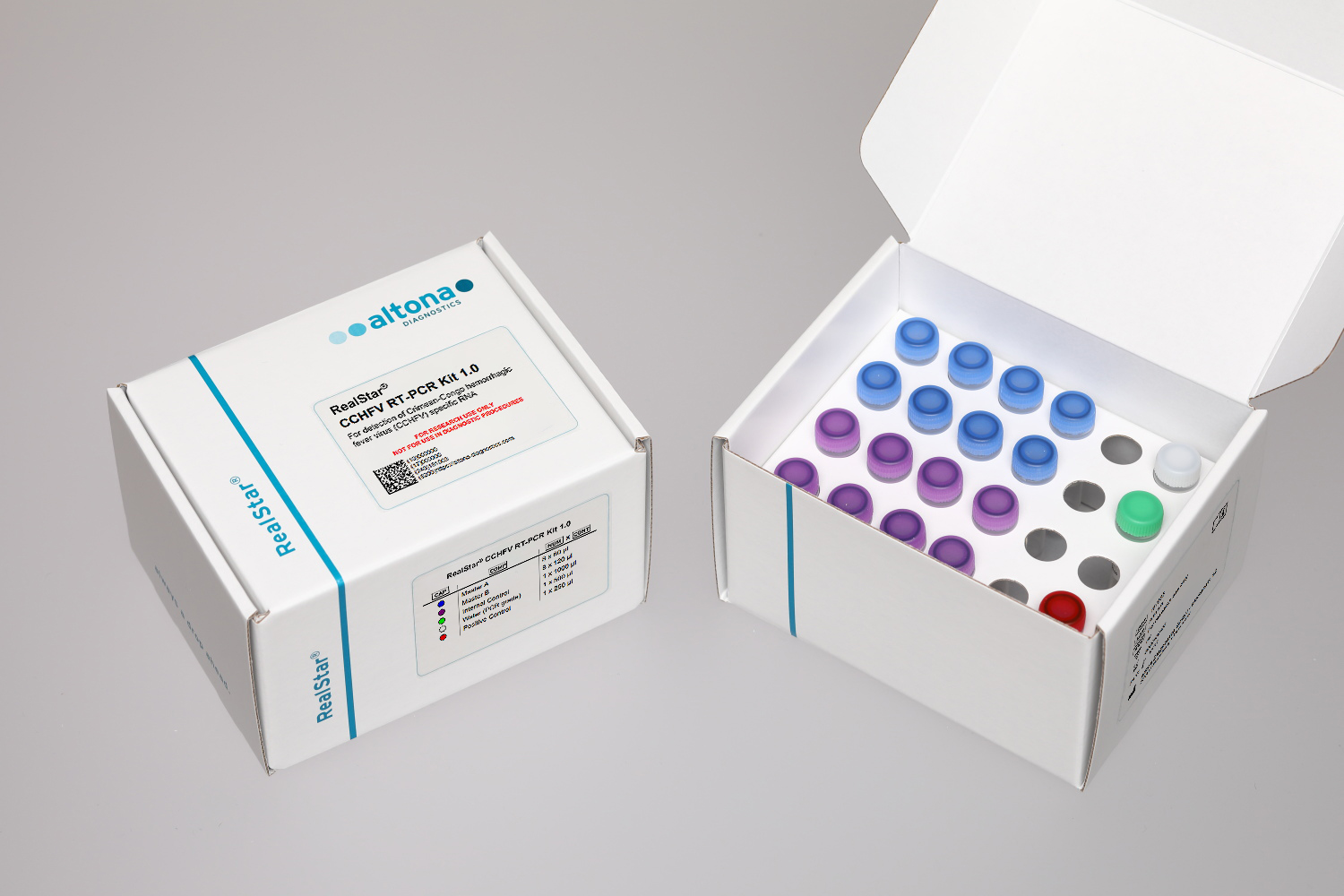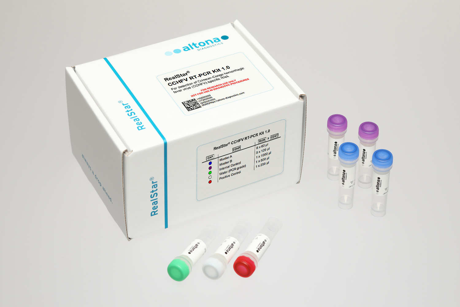The RealStar® CCHFV RT-PCR Kit 1.0 is a reagent system, based on real-time PCR technology, for the detection of Crimean-Congo hemorrhagic fever (CCHF) virus specific RNA.
