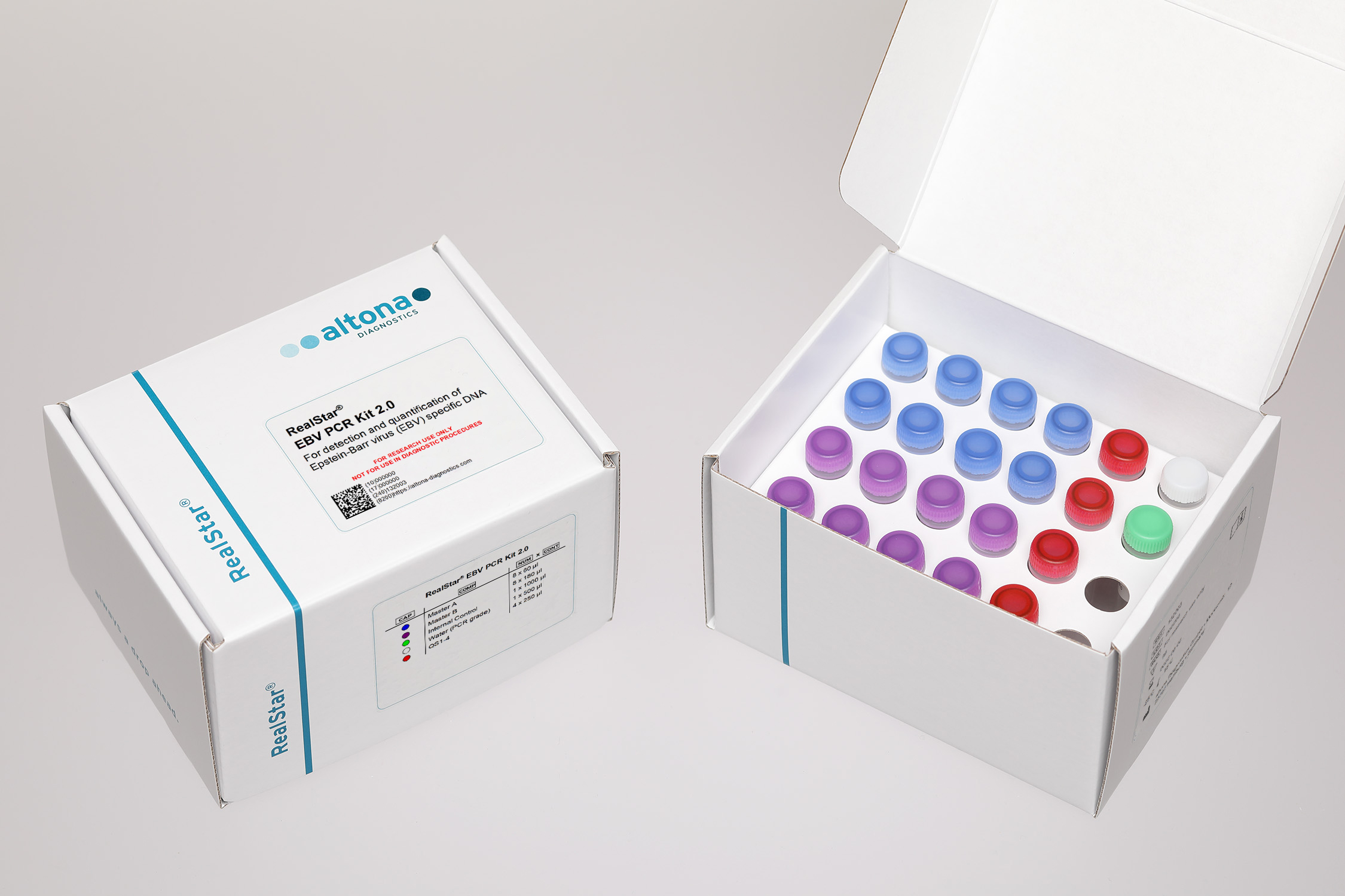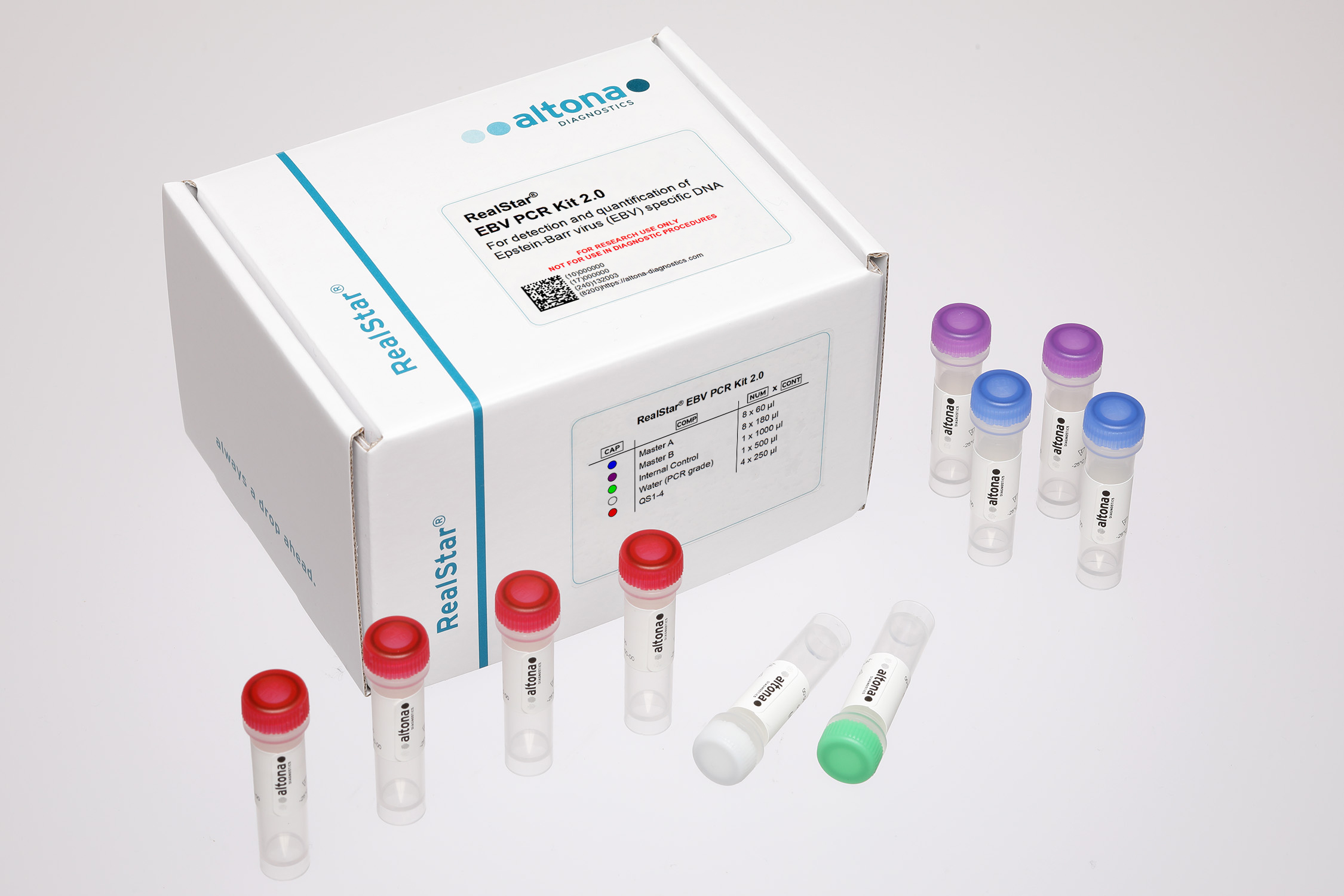 The RealStar® EBV PCR Kit 2.0 is a reagent system, based on real-time PCR technology, for the detection and quantification of Epstein-Barr virus (EBV) specific DNA.