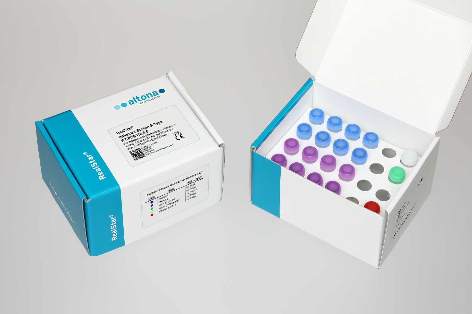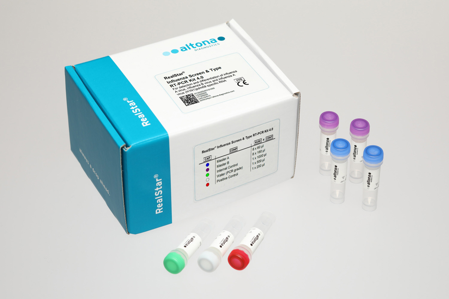 The RealStar® Influenza Screen & Type RT-PCR Kit 4.0 is an in vitro diagnostic test, based on real-time PCR technology, for the qualitative detection and differentiation of influenza virus specific RNA (influenza A, influenza B and influenza A (H1N1)pdm09 (swine flu)).