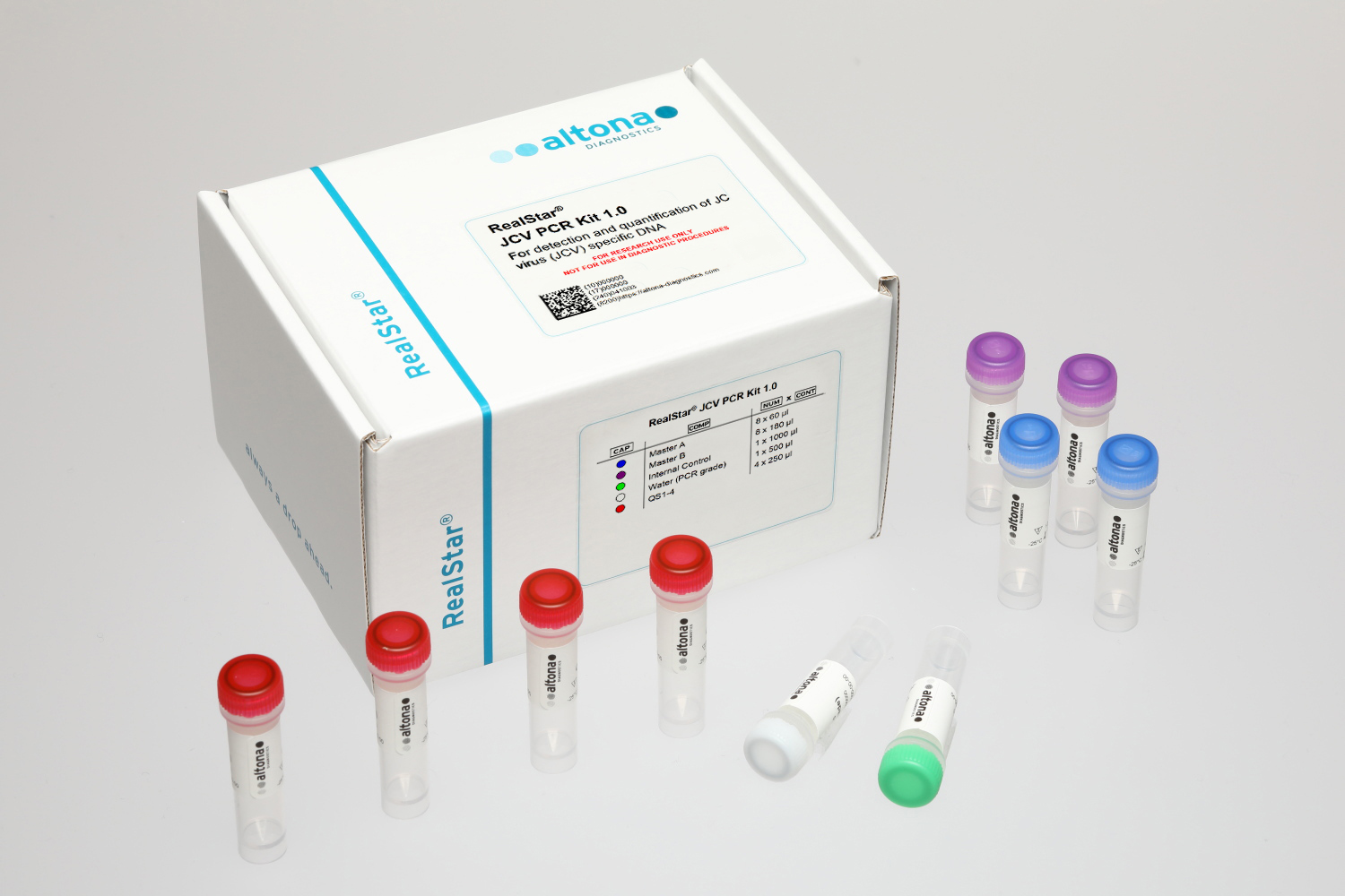 The RealStar® JCV PCR Kit 1.0 is a reagent system, based on real-time PCR technology, for the detection and quantification of JC virus (JCV) specific DNA.