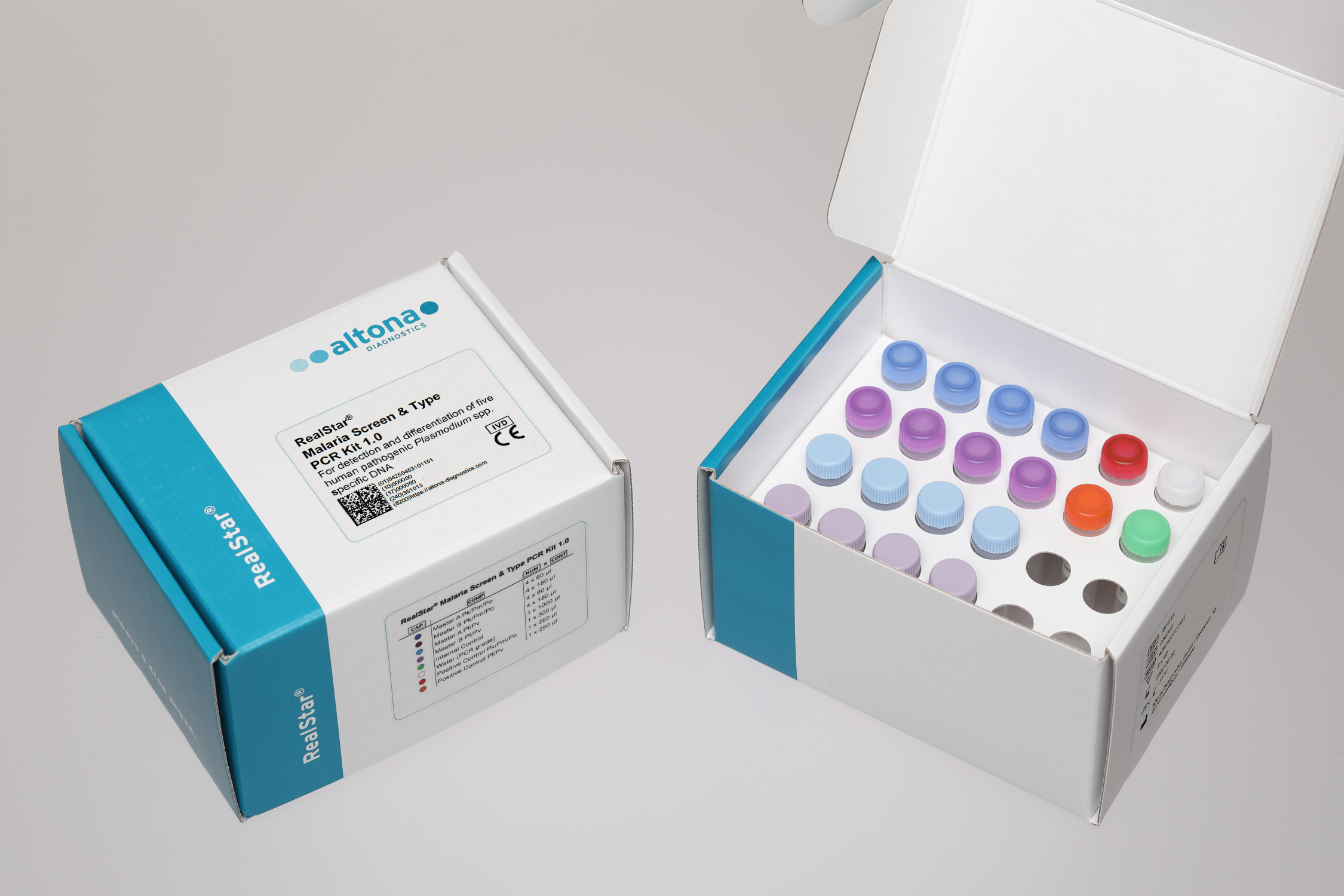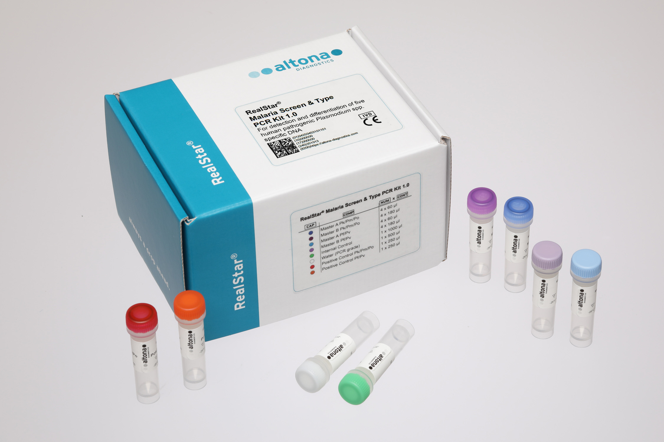 The RealStar® Malaria Screen & Type PCR Kit 1.0 is an in vitro diagnostic test, based on real-time PCR technology, for the detection and differentiation of DNA of the Plasmodium species Plasmodium malariaePlasmodium ovalePlasmodium knowlesiPlasmodium vivax and Plasmodium falciparum.