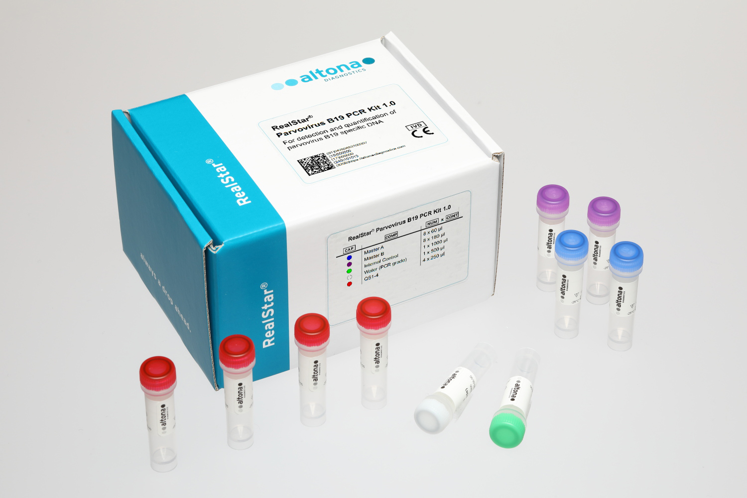 The RealStar® Parvovirus B19 PCR Kit 1.0 is an in vitro diagnostic test, based on real-time PCR technology, for the detection and quantification of parvovirus B19 specific DNA.